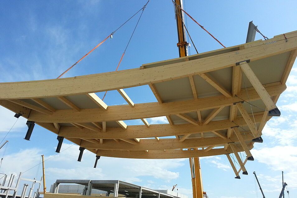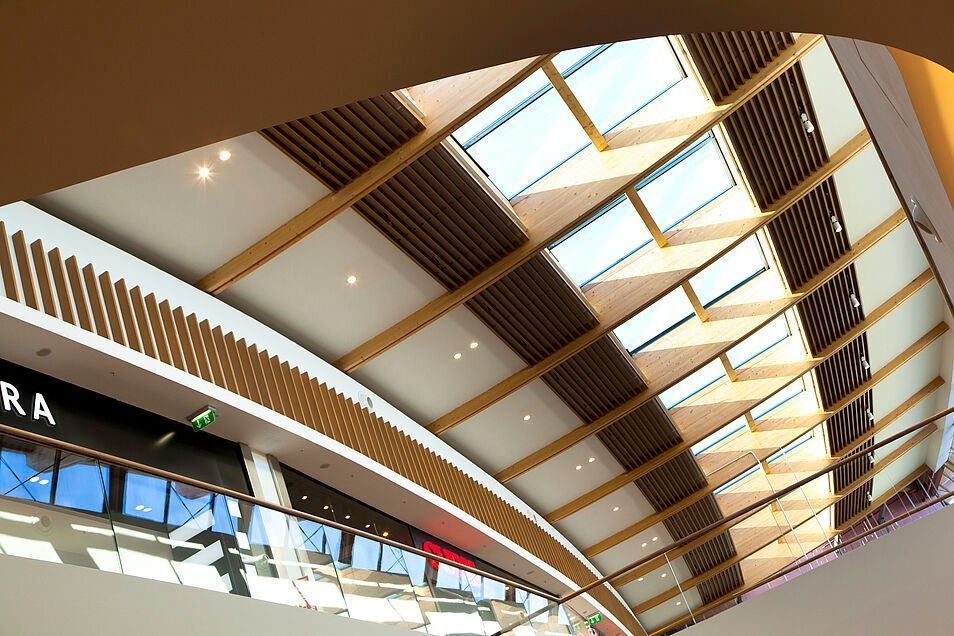 Le travi in legno lamellare contribuiscono in modo significativo all'estetica dello spazio e alla qualità di vita e di lavoro. Ambienti confortevoli grazie alle capacità di diffusione del materiale